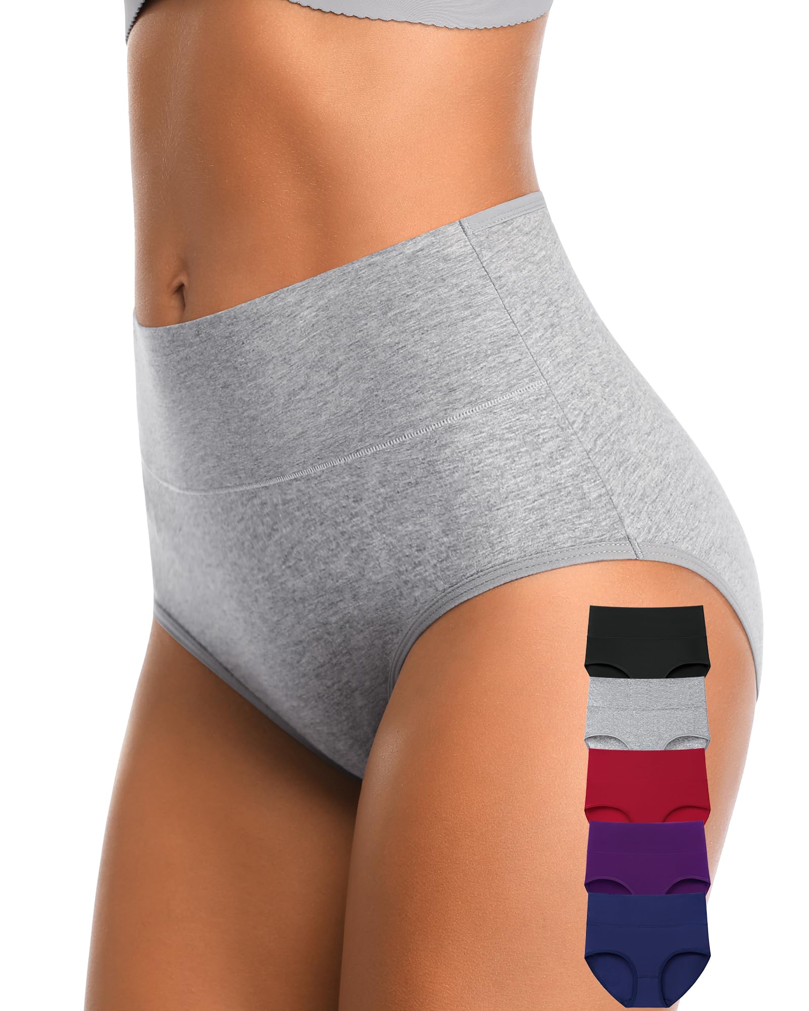 STRETCHY FUll COVERED HIGH WAISTBAND:Full coverage high waisted underwear,Soft stretchy double-layer fabric covered waistband that stays in place at the waist.No rolling down or bunching,with no compression but perfectly snuggish.Leg openings for chafe free comfort,No ride up with any type of movement,Full back coverage panties for women avoids the embarrassment of underpants clamping your buttocks, offering all-day comfort